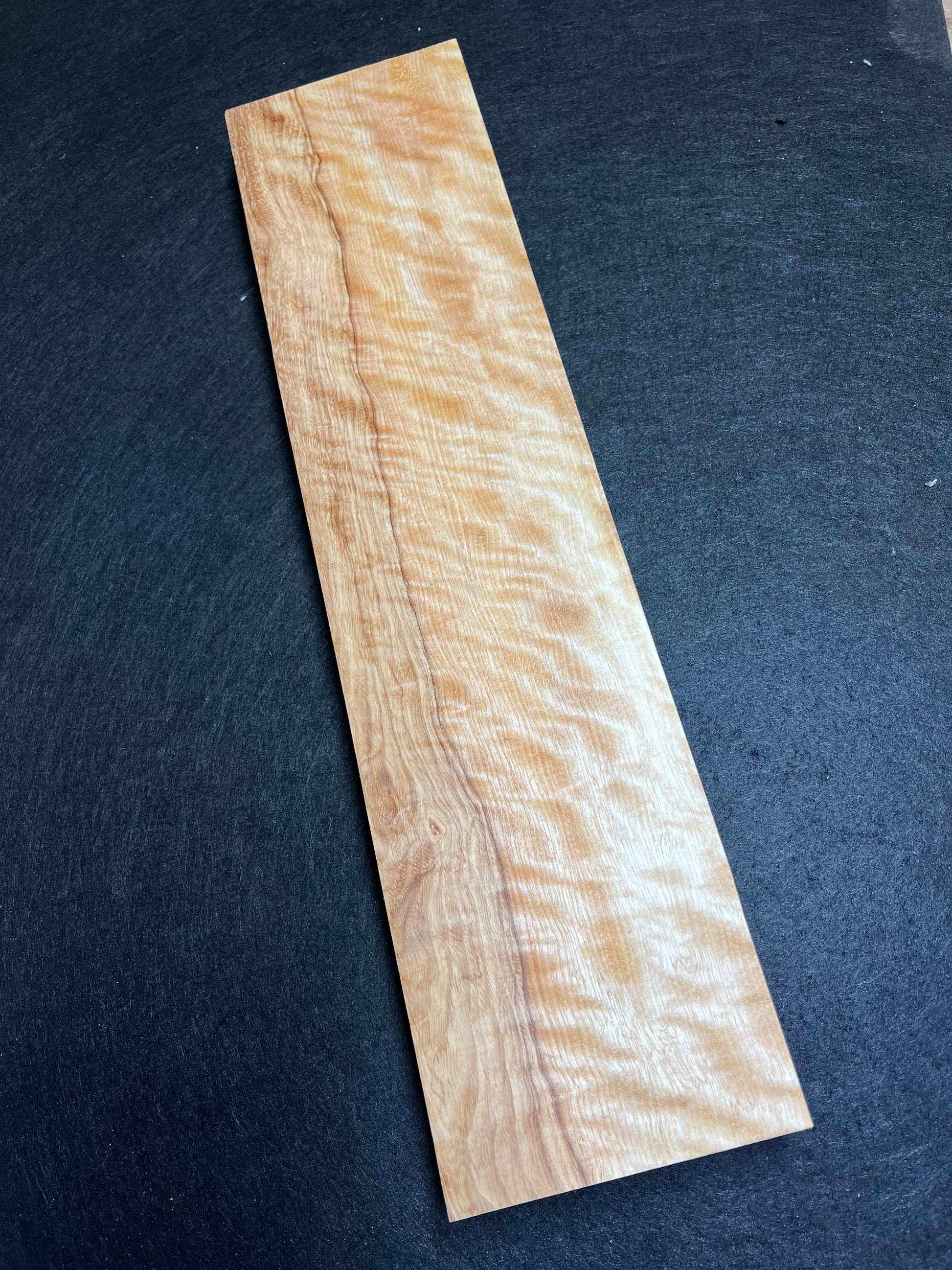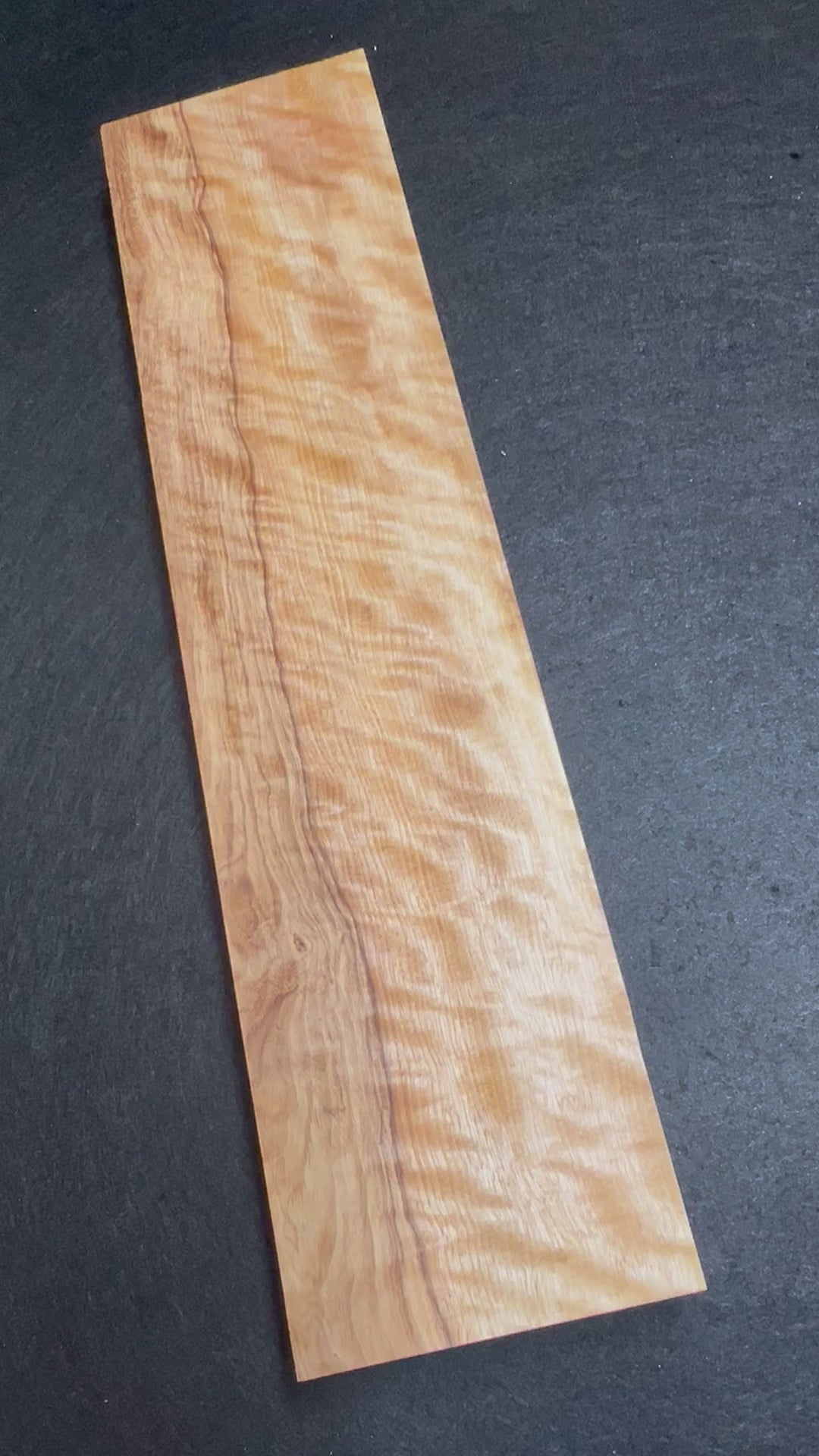 A stiff and dense material which is well suited to certain applications. Beautiful curly figure highlights this material which also has some darker staining in the heartwood.
