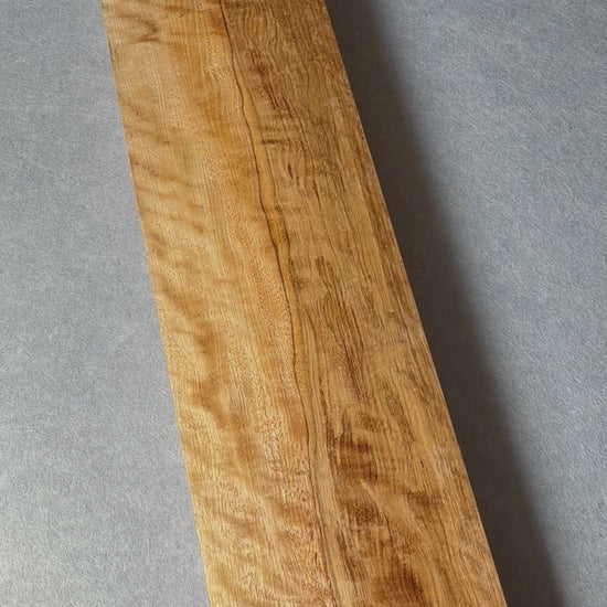 A stiff and dense material which is well suited to certain applications. Beautiful curly figure highlights this material which also has some darker staining in the heartwood.