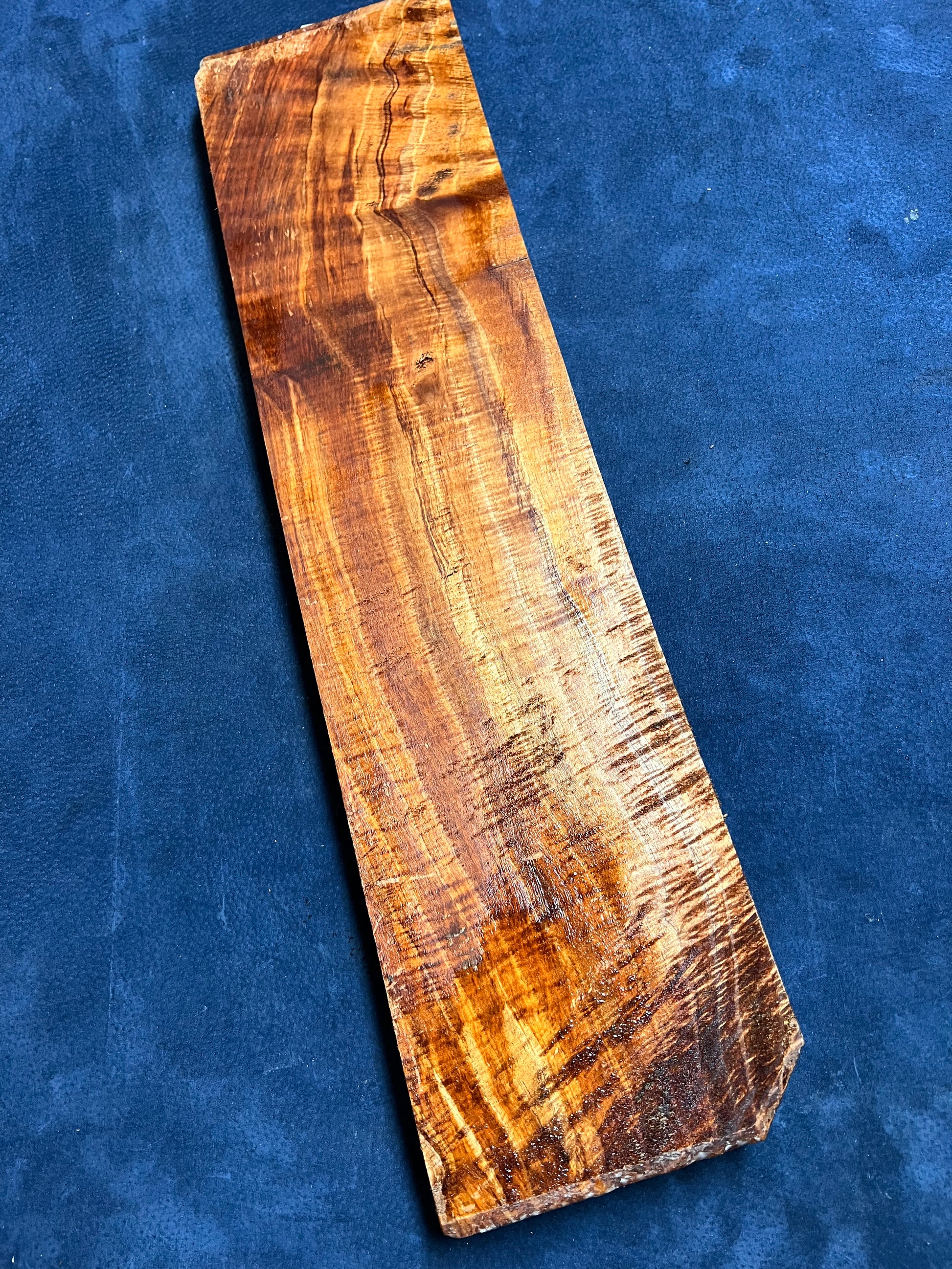 Figure Blackwood (Acacia melanoxylon) This is one of the most sought-after hardwoods for premium applications. Native to southeastern Australia and Tasmania and prized worldwide, this timber features stunning visual depth with striking figure, grain patterns, and lustrous tones that range from golden honey to deep reddish-brown. Its shimmering, wavy grain and occasional fiddleback or flame figuring make it a showstopper in any setting.