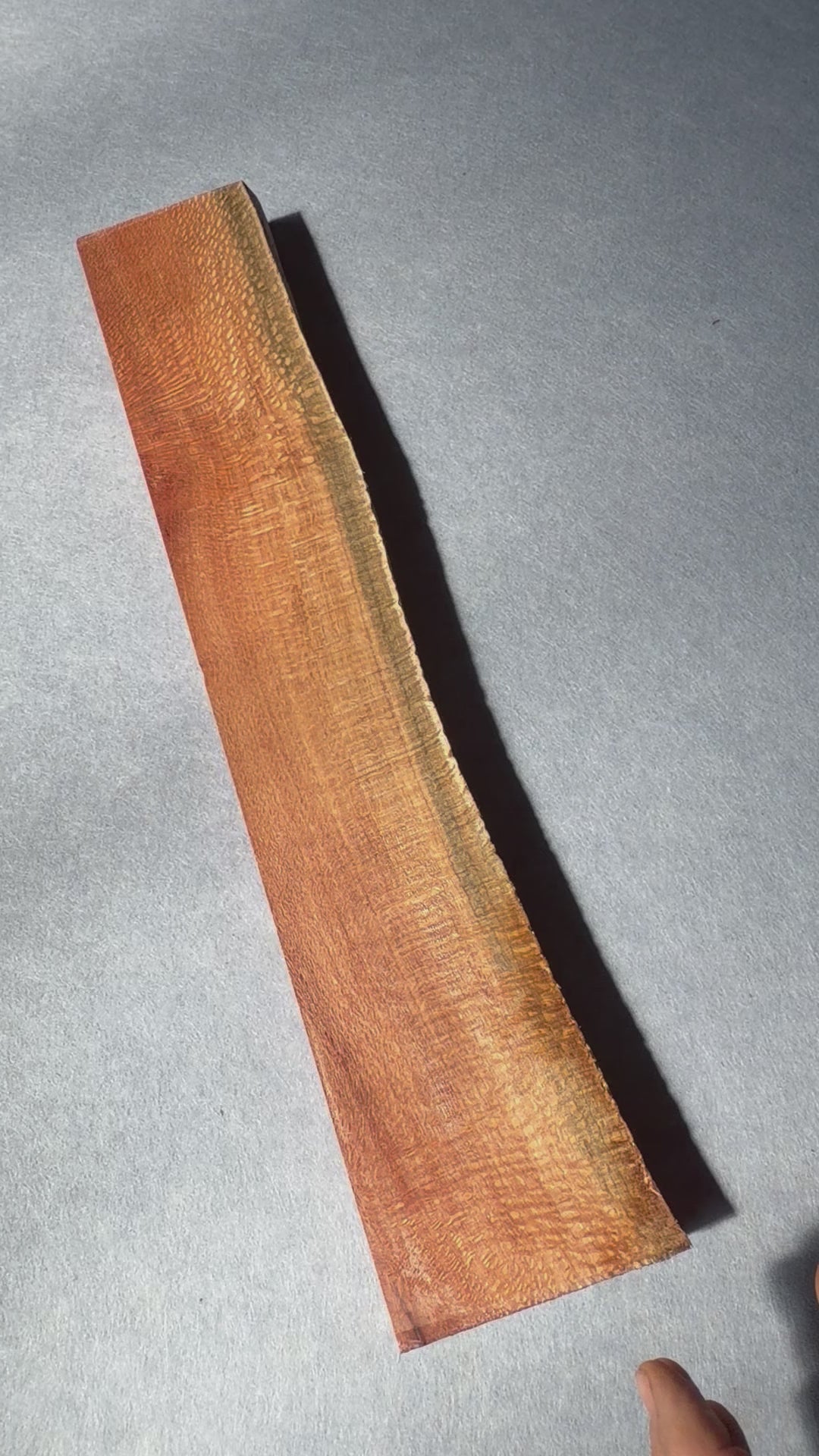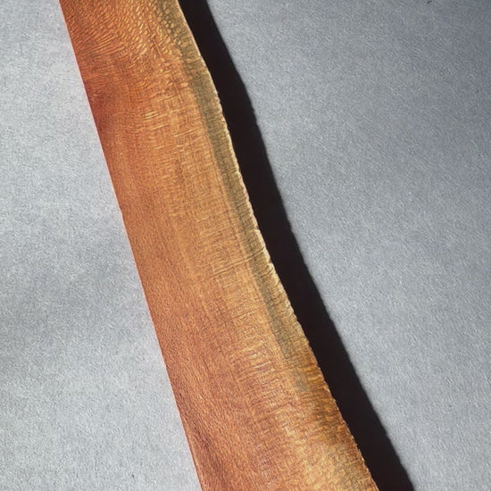 Better known for the nut it produces it is a member of the proteaceae family that has distinctive medullary ray structures. It can present fine lacy grain to broad rays which makes a highly decorative pattern depending which orientation the timber has been cut. It can be difficult to work by machines as it it prone to tear out if care is not taken but it carves and turns very well.