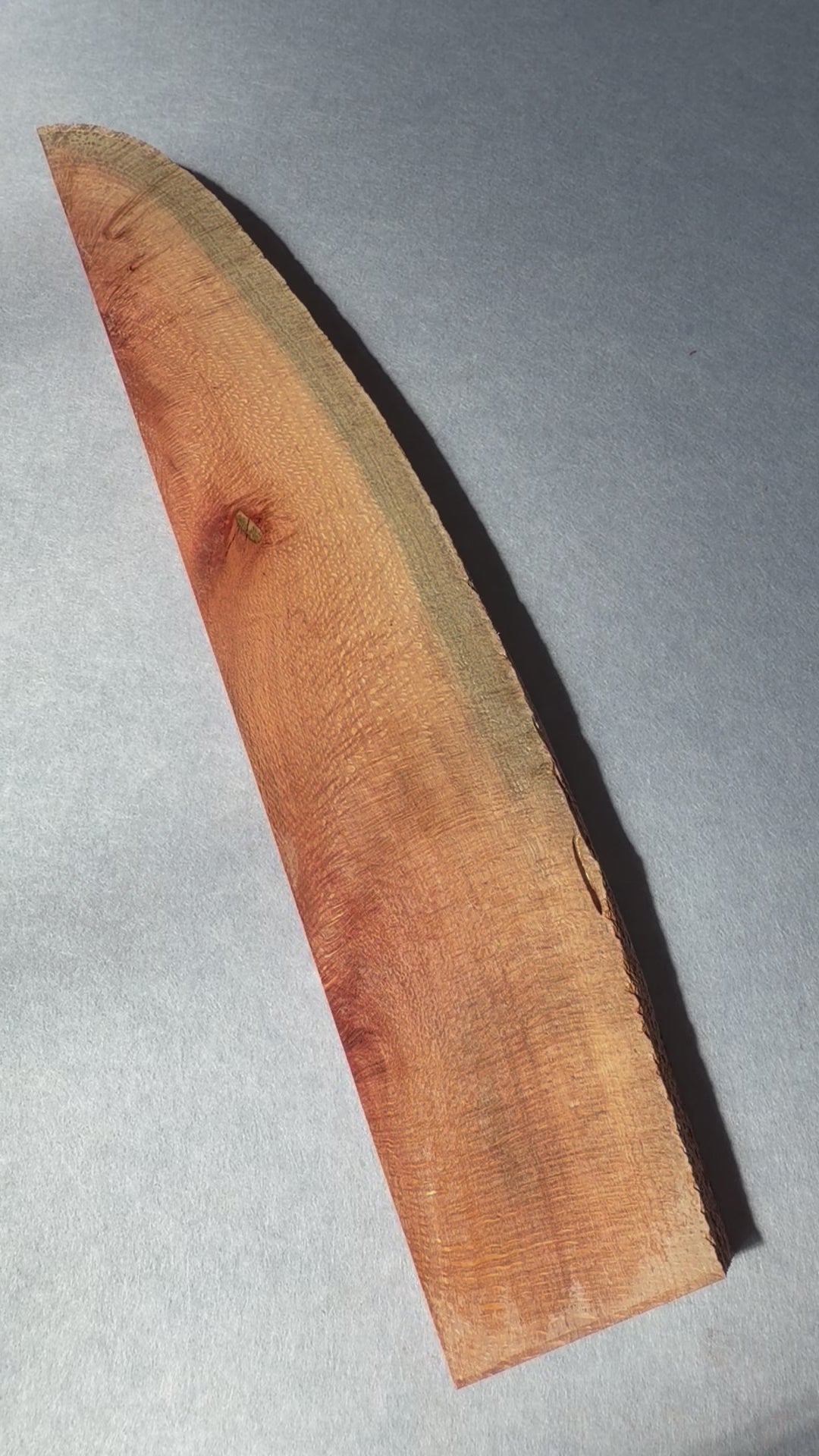 Better known for the nut it produces it is a member of the proteaceae family that has distinctive medullary ray structures. It can present fine lacy grain to broad rays which makes a highly decorative pattern depending which orientation the timber has been cut. It can be difficult to work by machines as it it prone to tear out if care is not taken but it carves and turns very well.
