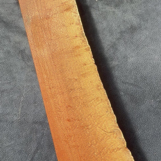 Better known for the nut it produces it is a member of the proteaceae family that has distinctive medullary ray structures. It can present fine lacy grain to broad rays which makes a highly decorative pattern depending which orientation the timber has been cut. It can be difficult to work by machines as it it prone to tear out if care is not taken but it carves and turns very well.
